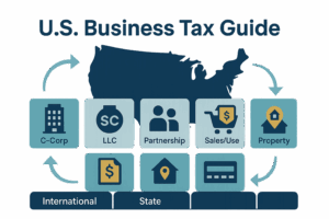 This page summarizes the key U.S. business tax rules and common filings in plain English. Below is a table of contents with jump links to every section (H2/H3), including the FAQ.